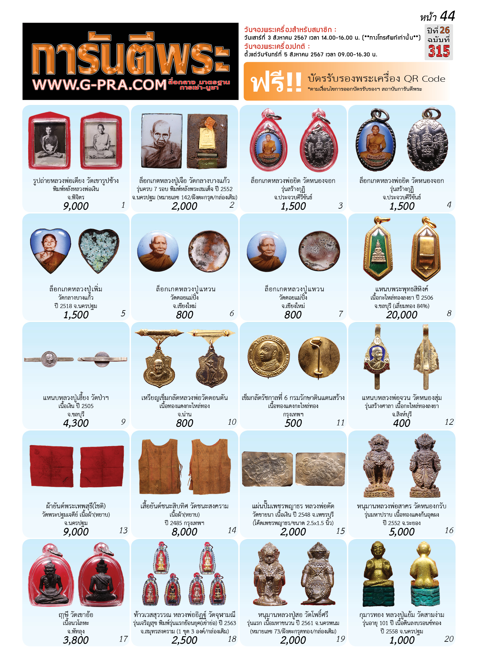 กรุณาเลือกเล่มนิตยสารการันตีพระ :