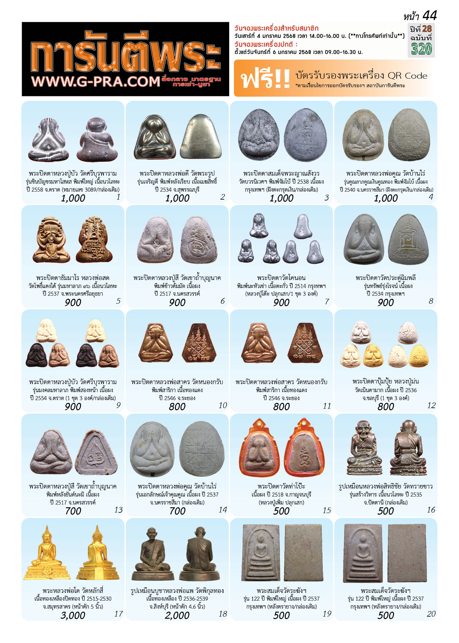 กรุณาเลือกเล่มนิตยสารการันตีพระ :