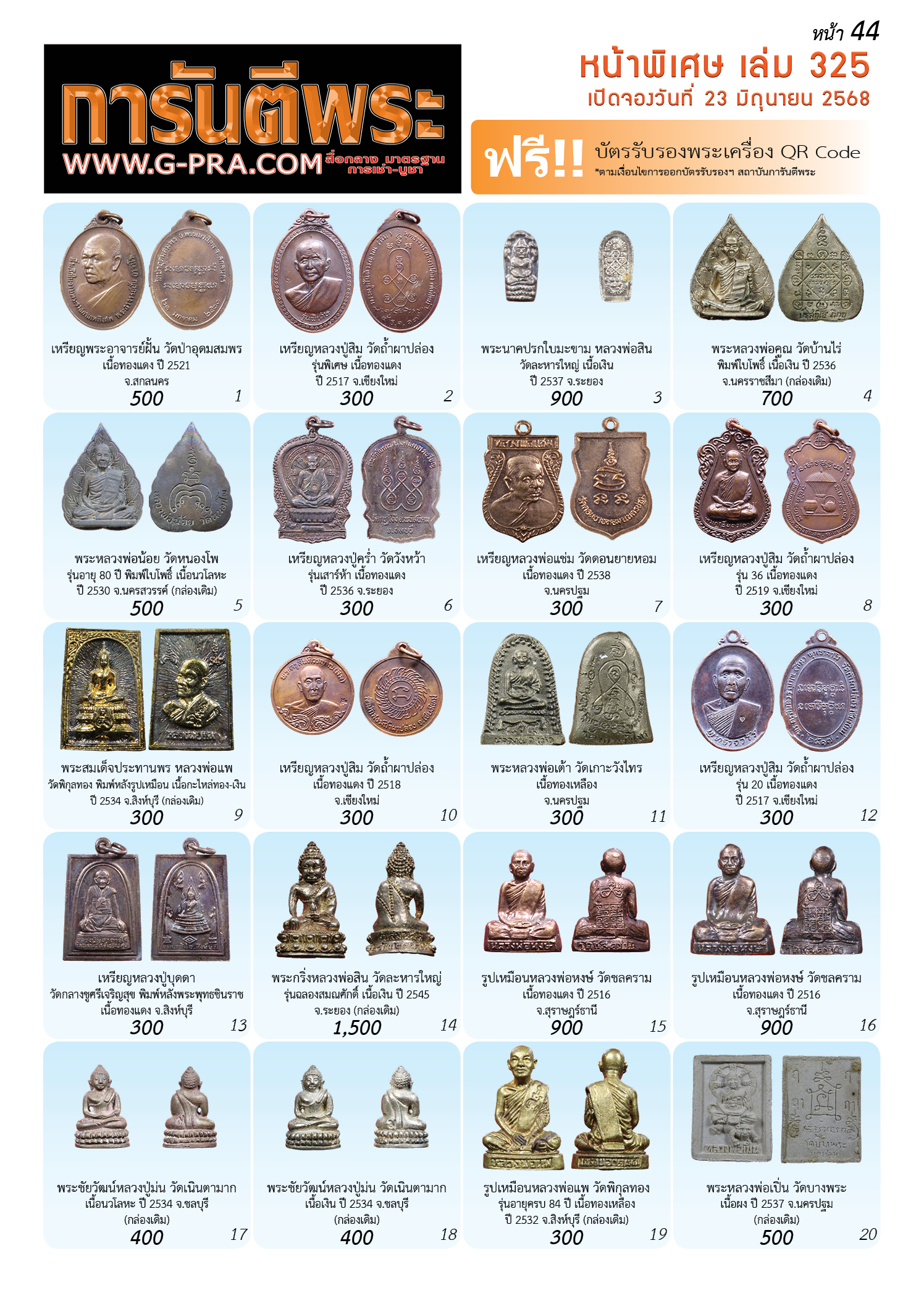 กรุณาเลือกเล่มนิตยสารการันตีพระ :