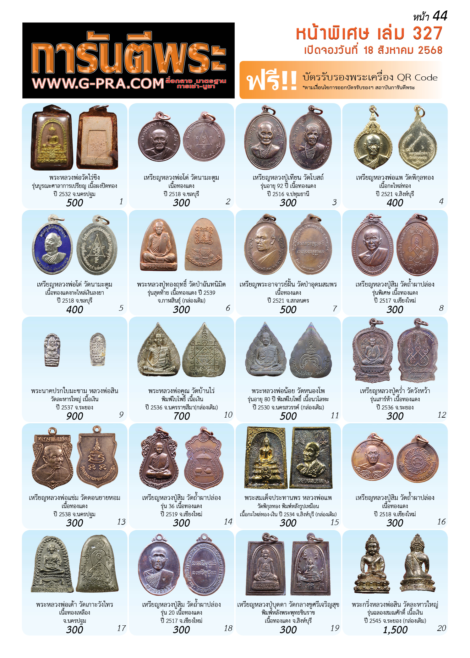 กรุณาเลือกเล่มนิตยสารการันตีพระ :