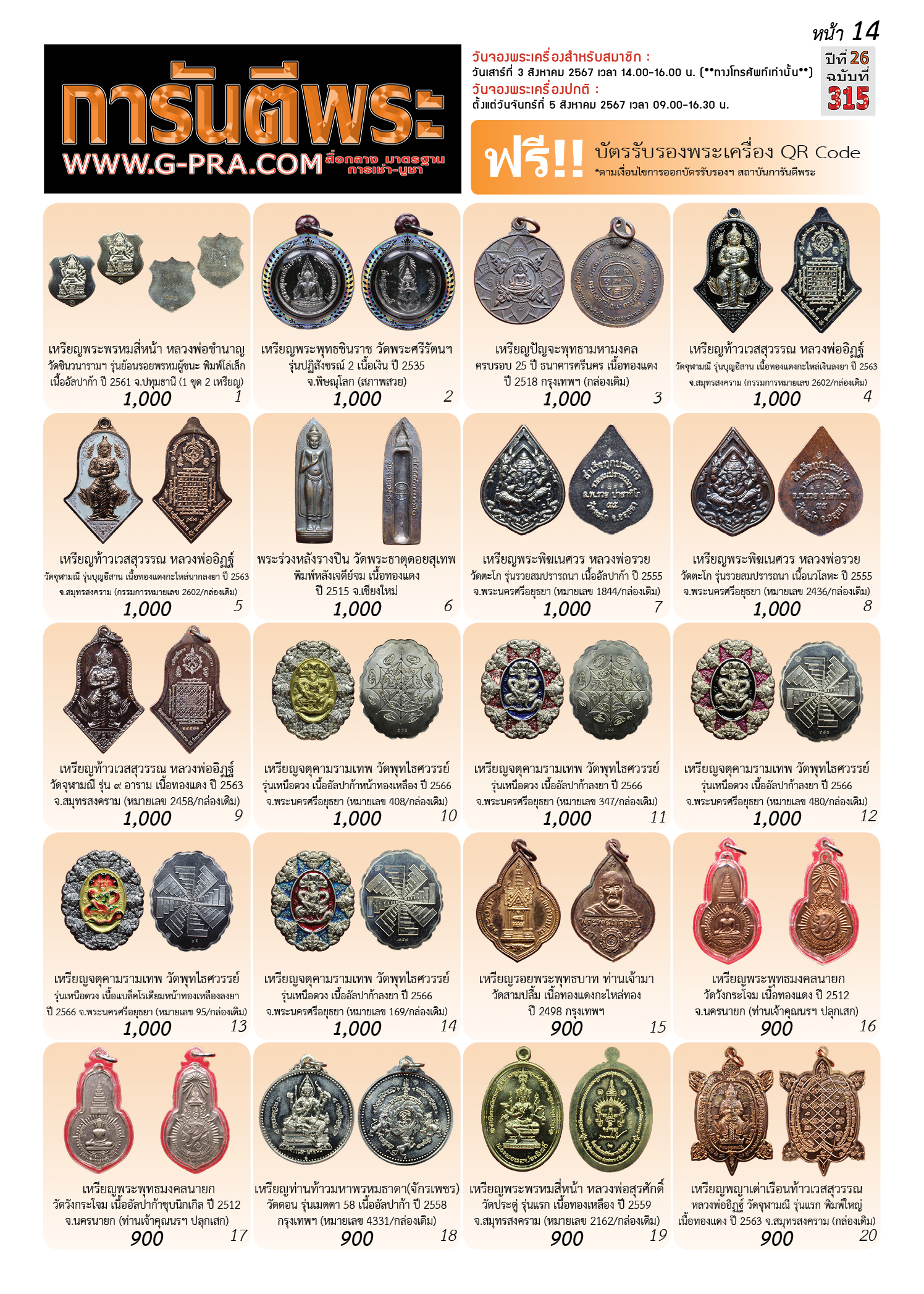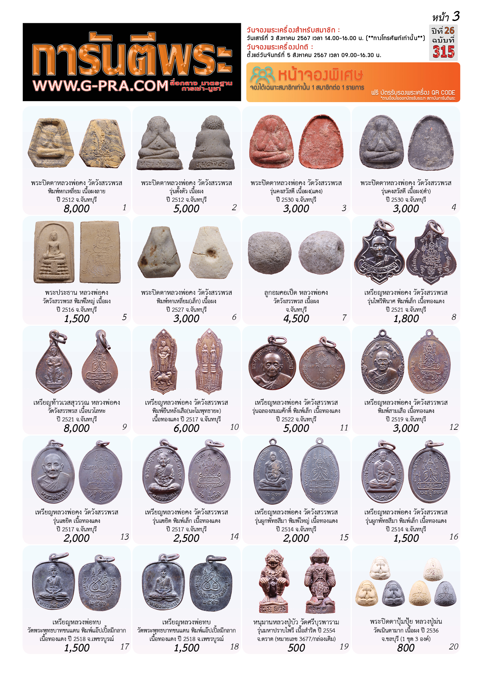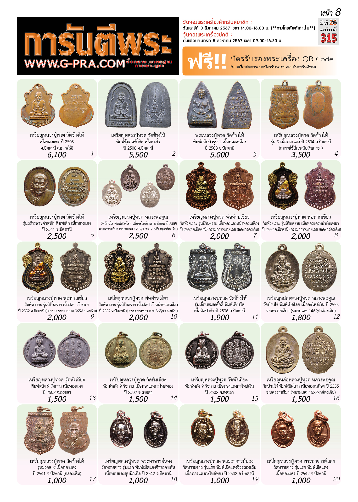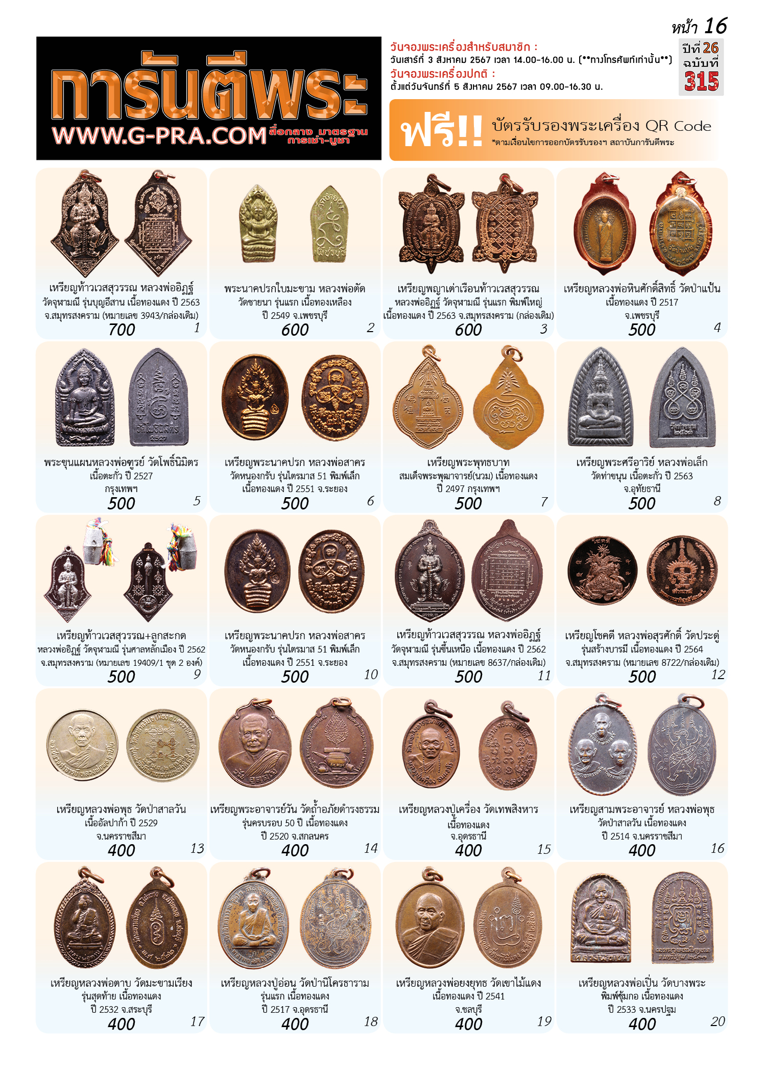 กรุณาเลือกเล่มนิตยสารการันตีพระ :