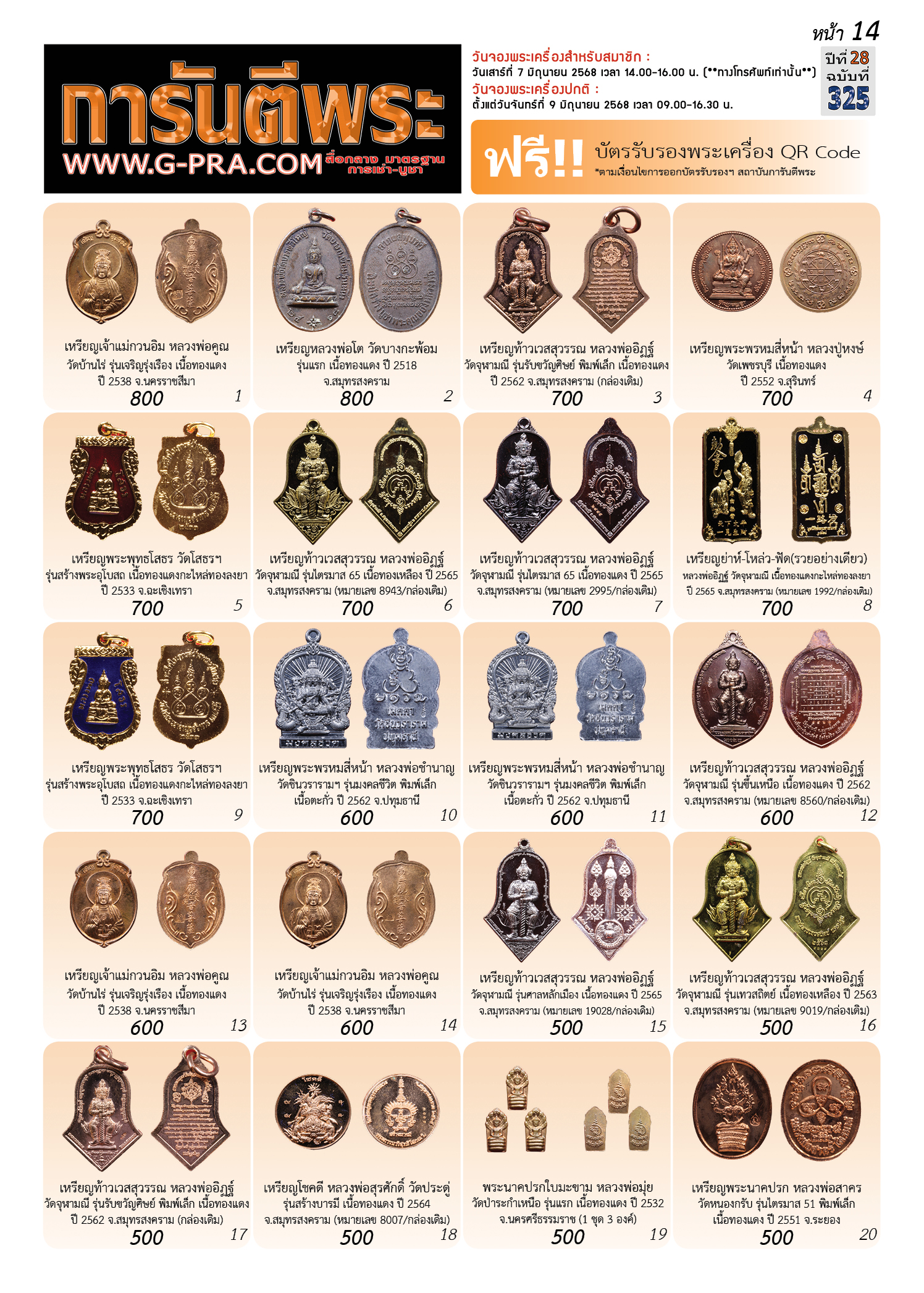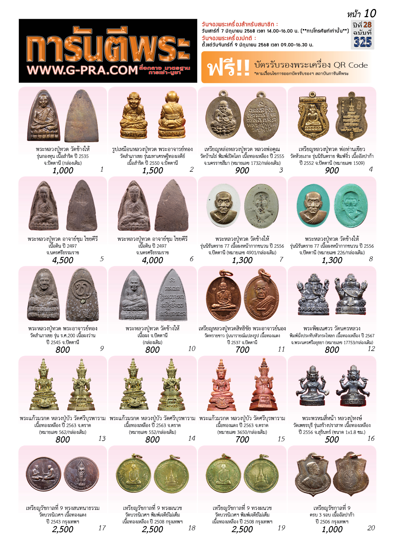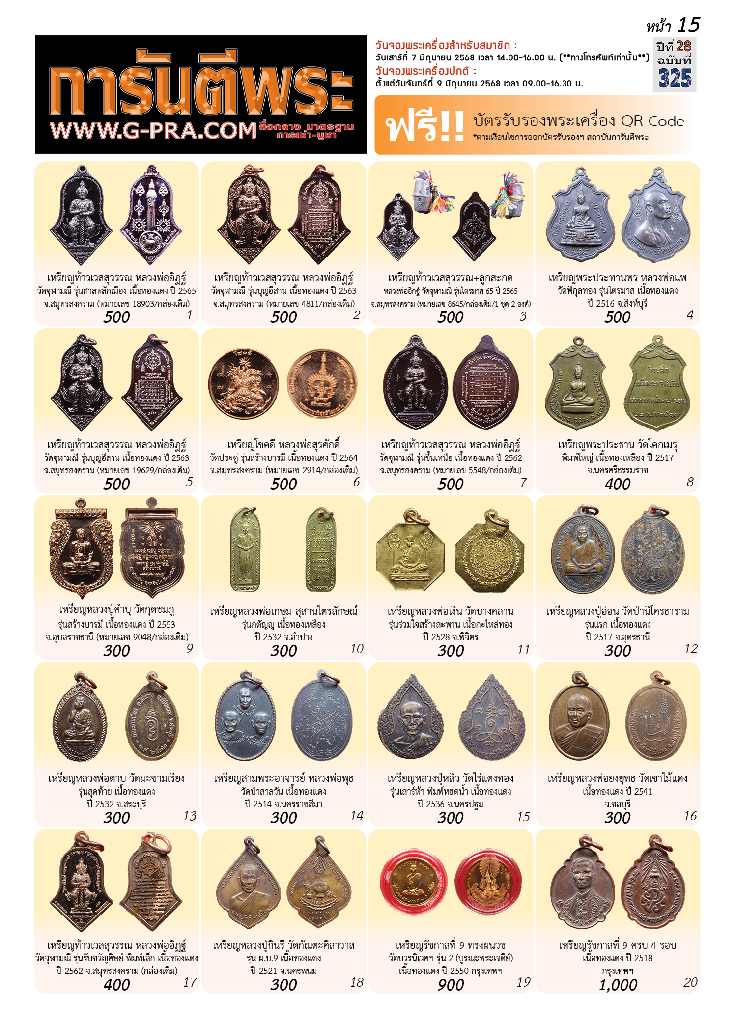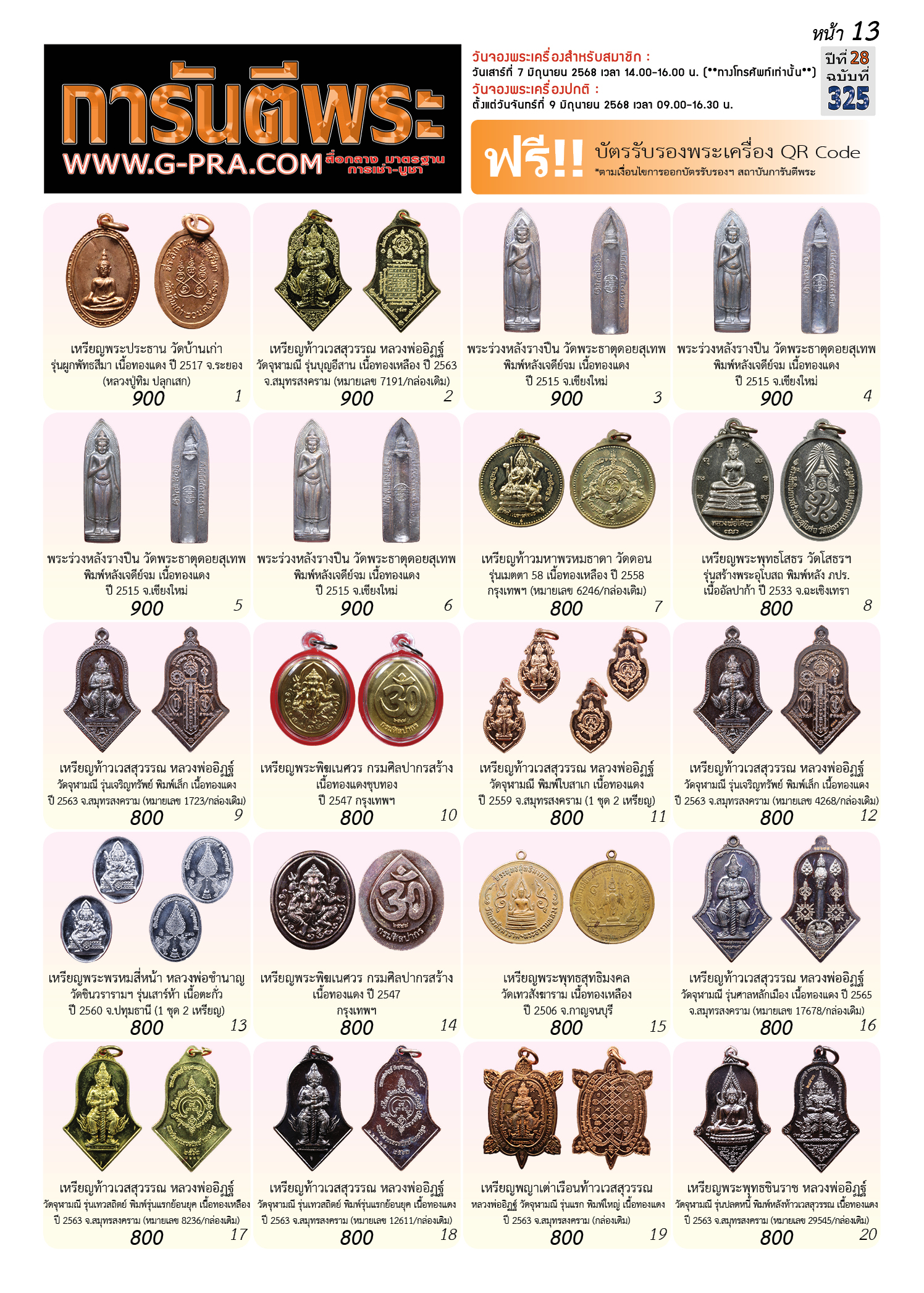 กรุณาเลือกเล่มนิตยสารการันตีพระ :