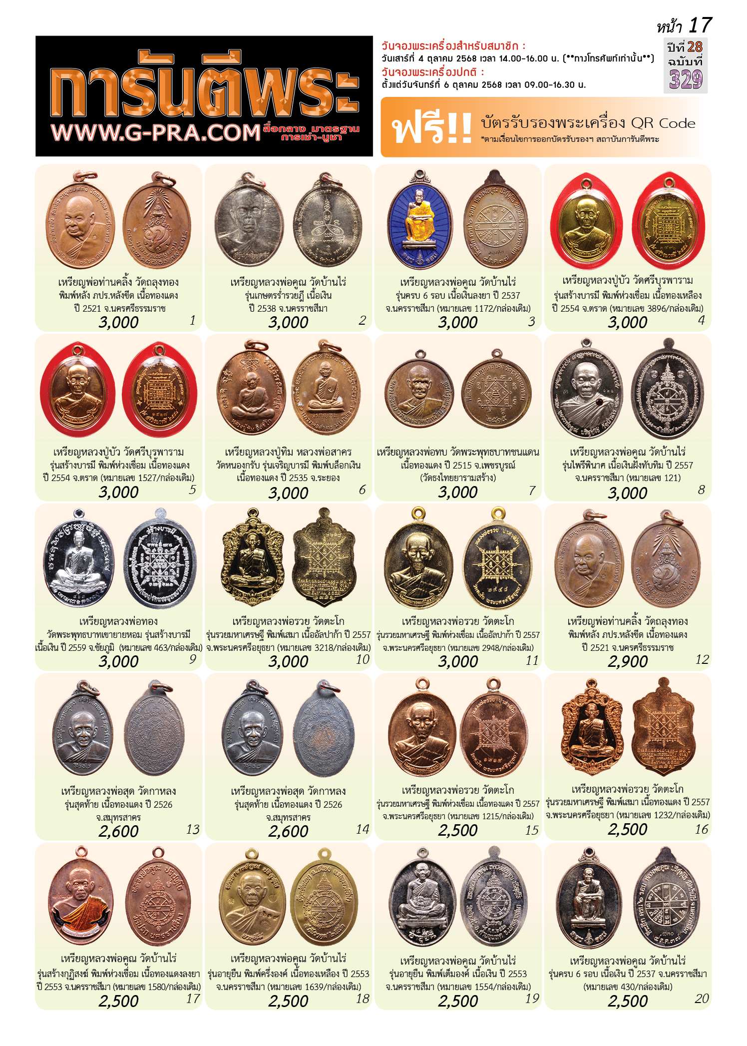 กรุณาเลือกเล่มนิตยสารการันตีพระ :