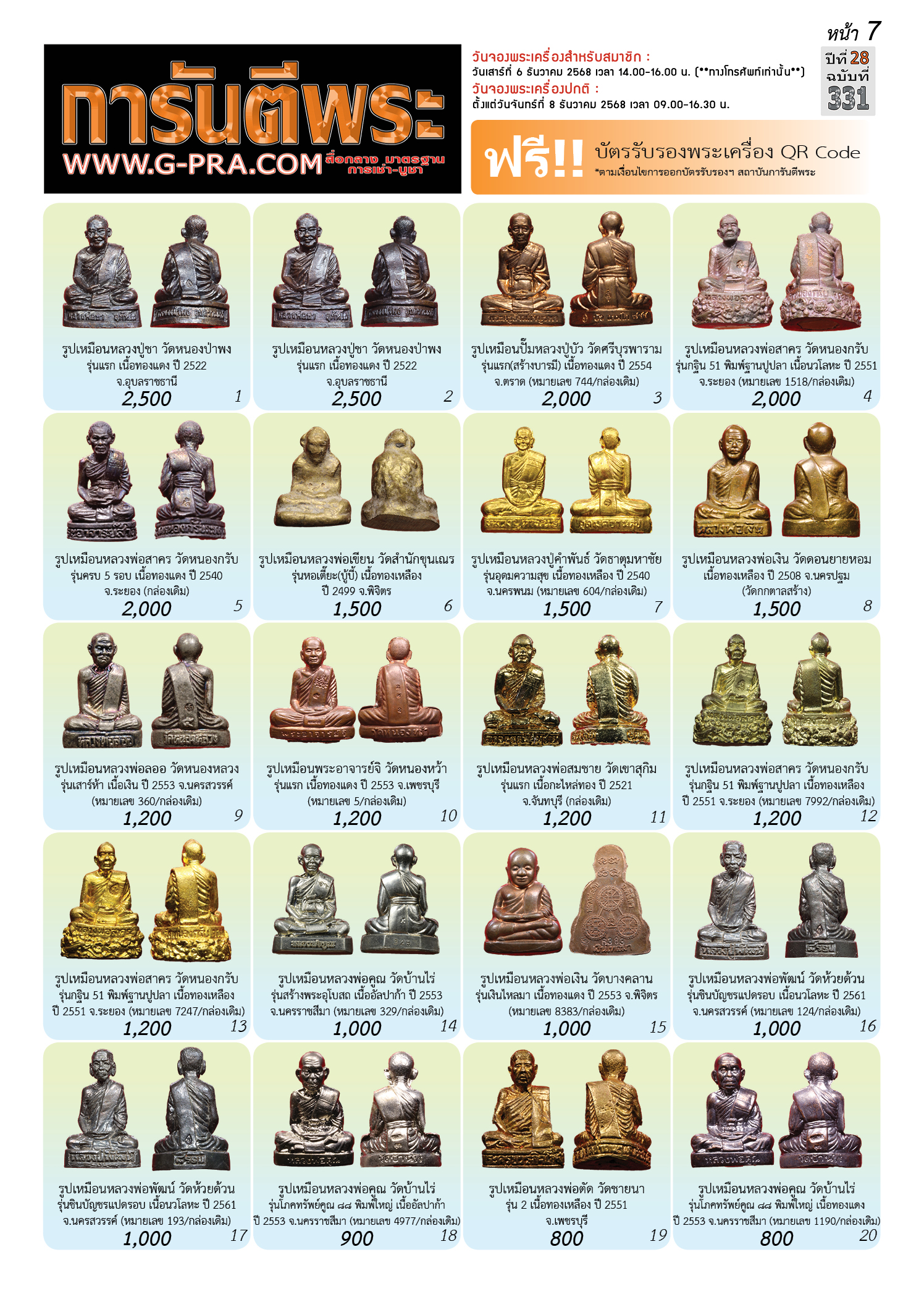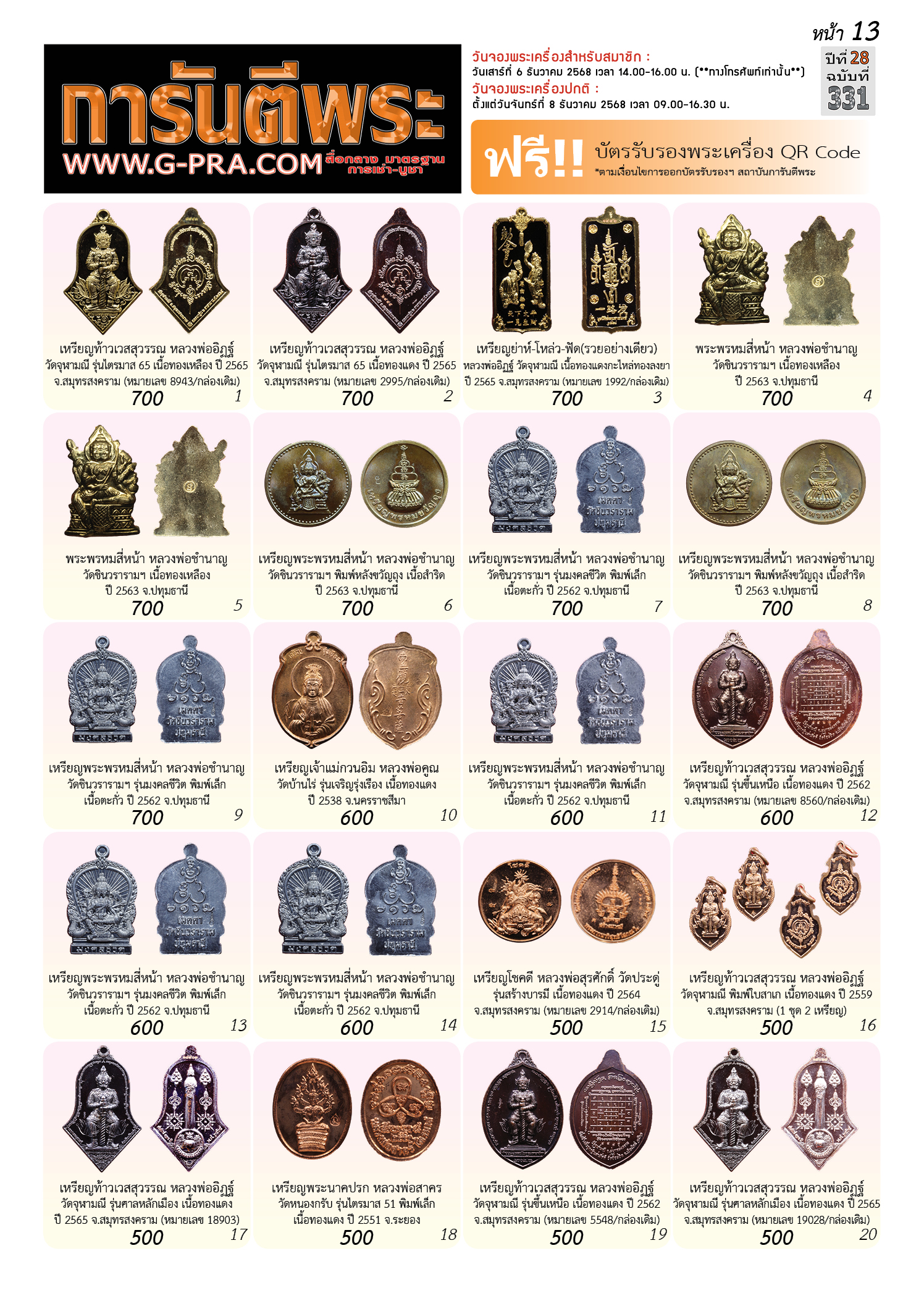 กรุณาเลือกเล่มนิตยสารการันตีพระ :