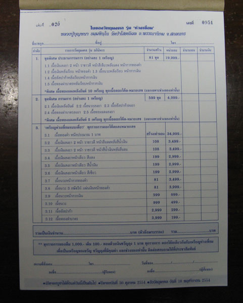 1.เหรียญเนื้ออัลปาก้า สร้าง 2,999 เหรียญ ราคาเหรียญละ 350.- มีจำนวน 10 เหรียญ