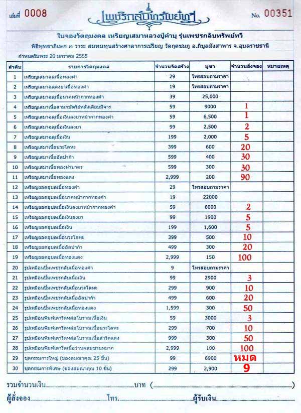 30 ชุดกรรมการพิเศษ (ของสมนาคุณ 10 ชิ้น) สร้าง 299 ชุด ๆละ 2,900 บ. มี 9 ชุด