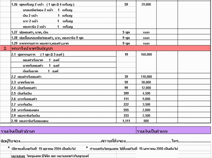 เนื้อทองระฆังก้นทองแดง สร้าง 1,111 องค์ มี 5 องค์ๆละ 1,650 บาท