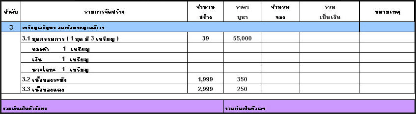 - เนื้อทองระฆัง จำนวน 1 เหรียญ