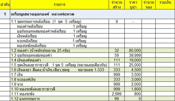 รายการที่ 1. เนื้อเงิน มี 1 เหรียญ ๆ ละ 5200 บาท