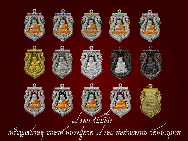 เหรียญเสมาฉลุยกองค์ หลวงพ่อทวด 8 รอบ พ่อท่านพรหมเนื้อเงินลงยาราชาวดี 1 ชุด 5 เหรียญครับ สร้าง 111 ชุด (หมายเลขเดียวกัน) ราคา 30000 บาทครับ (จองจากคุณ moolek ครับ) รวมค่าจัดส่งแล้วครับ