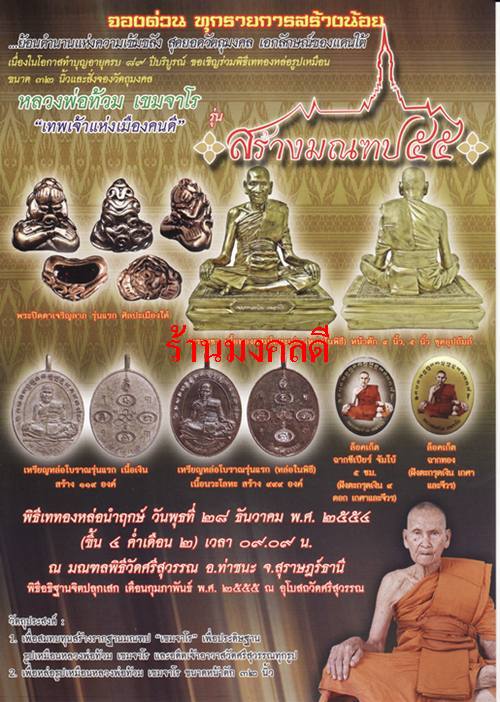 หัวข้อกระทู้ : เปิดจองหลวงพ่อท้วม เขมจาโร เทพเจ้าแห่งเมืองคนดี รุ่นสร้างมณฑป ๕๕ วัดศรีสุวรรณ จ.สุราษฎร์ธานี