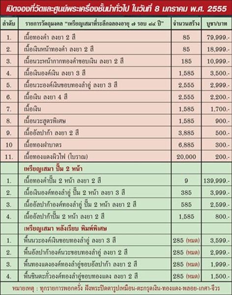 สร้าง 285 เหรียญ มีจำนวน 1 เหรียญ ราคา 3,000.-