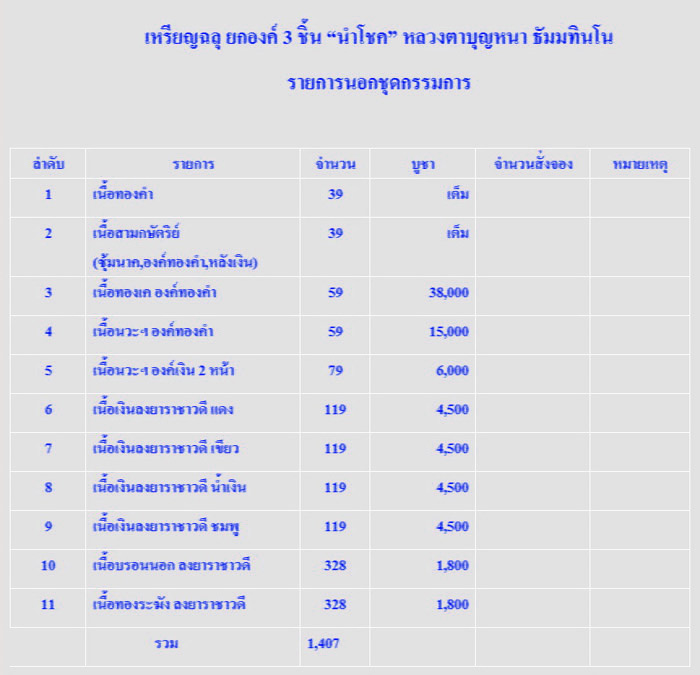 4. เนื้อเงินลงยาราชาวดี สีน้ำเงิน มีจำนวน 1 องค์ ราคาองค์ละ 5,500 บาท