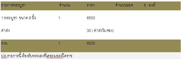 รายการพระบูชา มียอดจำนวน 6 องค์ ( สำหรับท่านที่สะดวกไปรับของเองที่โคราชนะครับ ท่านที่ไม่สะดวก ก็รอจองผ่านศูนย์ต่างๆครับ)