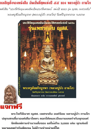 หนังสือรวมวัตถุมงคลสักการะอันเป็นที่สุดแห่งปี 2553 ***รุ่นเพชรกลับ ***พระครูสังฆกิจบูรพา (หลวงปู่บัว ถามโก) วัดศรีบุรพาราม จ.ตราด