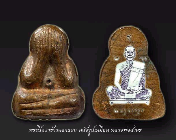 ปิดตาข้าวตอกแตก หลวงพ่อสาคร วัดหนองกรับ หรือปิดตาน้ำท่วม (หลังรูปเหมือน)