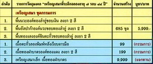 .......... เหรียญเสมาชุดกรรมการ สร้าง 685 ชุด ราคาจองวัด 5999 บาทประกอบด้วย 3 เหรียญ ดังนี้