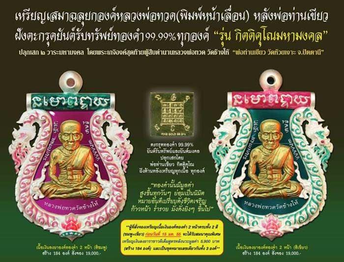 รายการที่ 14 บรอนซ์ชุบทอง ลงยาซุ้มพญานาค+ฉากสีธงชาติ มีจำนวน 2 เหรียญ ราคาเหรียญละ 1,500 บาท