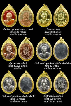 หมายเหตุ รายการวัตถุมงคลที่จัดสร้างขึ้นมานี้จะทำการตอกโค๊ดและหมายเลขทุกองค์ ยกเว้นเนื้อทองแดงจะทำการตอกโค๊ตอย่างเดียวไม่ตอกหมายเลข