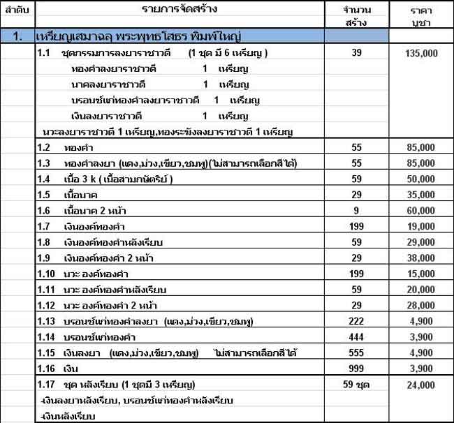 1.2 เหรียญเนื้อเงินพิมพ์ใหญ่ (รายการ 1.16)จำนวน 1 เหรียญ