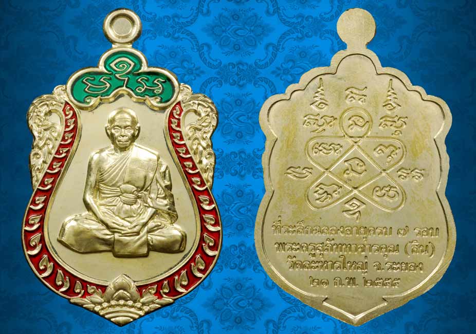 6.เหรียญเสมาหลังเรียบ พิมพ์พิเศษพื้นชินตะกั่วองค์ทองล่ำอู่ขอบทองแดง ลงยา 2 สี จำนวน 3 องค์ ในราคาองค์ละ 2000 บาท