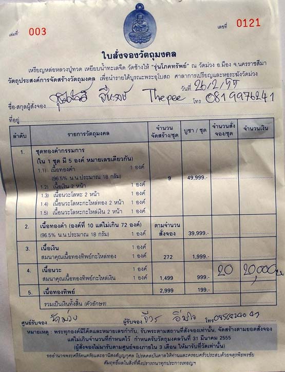 มีใบ จอง จาก วัด สดๆ ร้อนๆ รับพระส่ง ทันใจ แน่นอน เพราะอยู่ โคราช รับพระ ๒๔ มี ค ๕๕