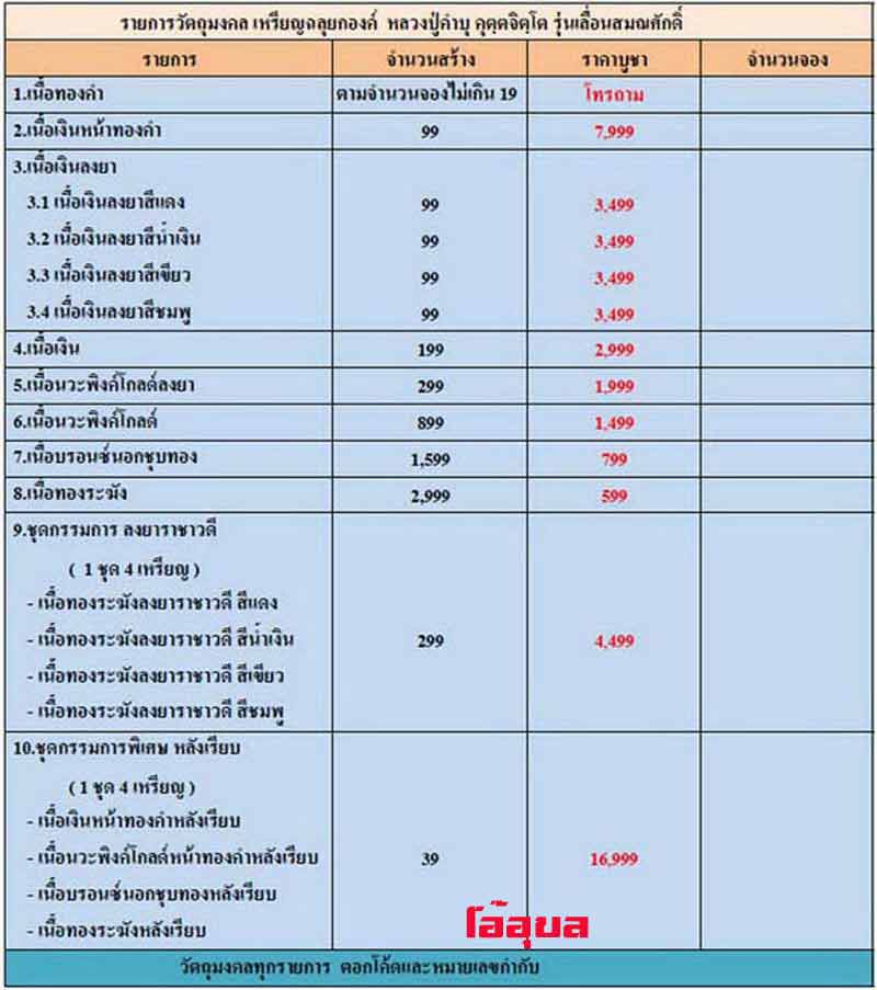 1.เนื้อทองคำ สร้าง ตามสั่งจอง(ไม่เกิน19 เหรียญ) โทรถาม