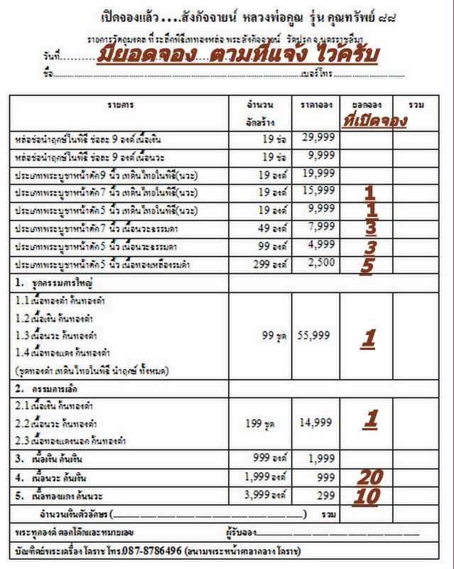 1 ชุดกรรมการใหญ่ (ทองคำ) สร้าง 99 ชุดๆละ 55,999 บาท....................มียอด 1 ชุด