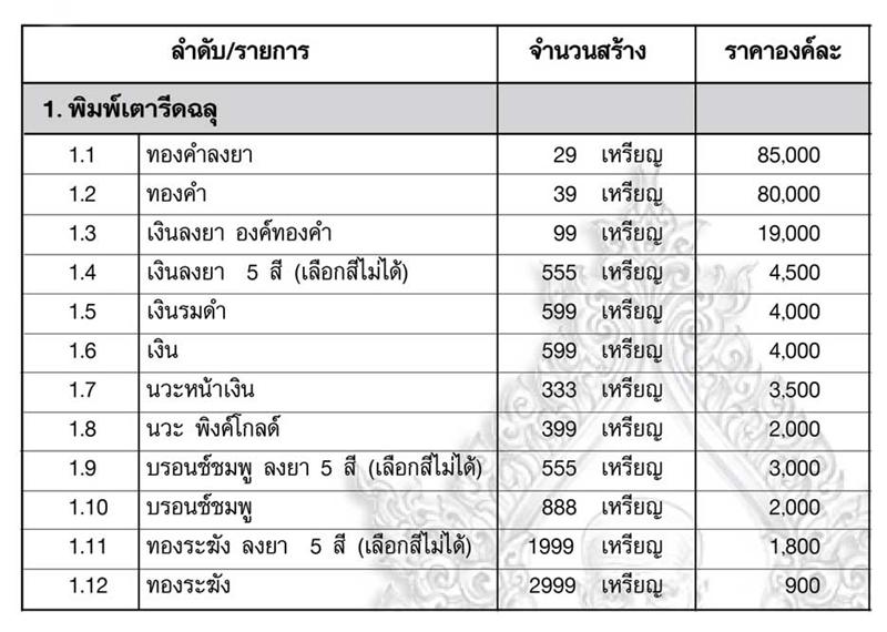 1.11 เนื้อทองระฆังลงยา 5 สี ราคา 2000 บาท มียอด 10 เหรียญ