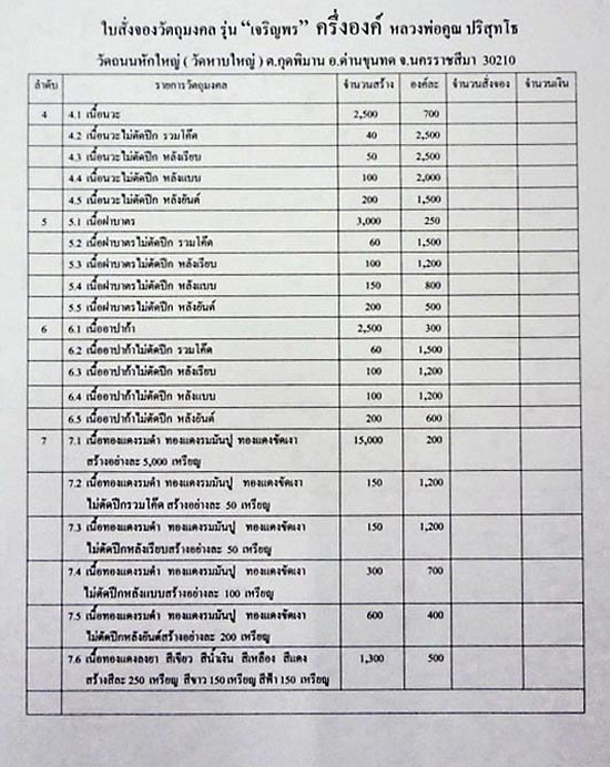 ฝาบาตรไม่ตัดปีก หลังยันต์ สร้าง 200 เหรียญ ราคา 2,750 บ (มี 1 เหรียญ)