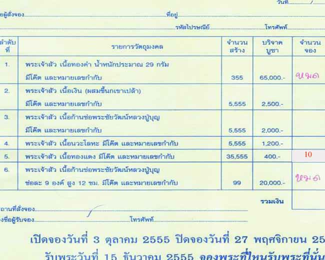 ** ขอค่าจัดส่งท่านละ 100 บ. (พร้อมส่งสำเนารายการจอง+ส่งของเมื่อได้รับพระแล้วค่ะ)