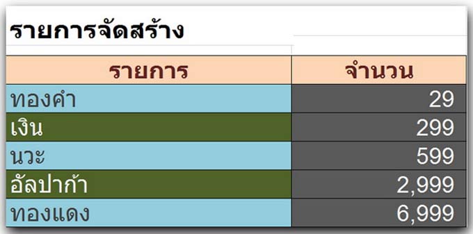 - เนื้อเงิน มียอด 1 เหรียญ เหรียญละ 5,500 บาท