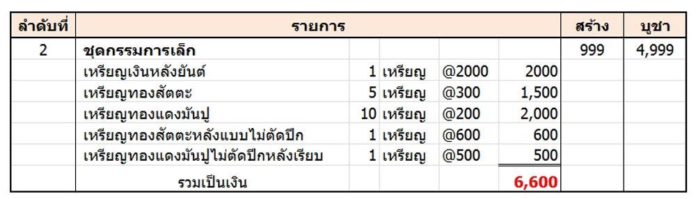 4 เนื้อทองสัตตะ 5 เหรียญ = 1,500 บาท