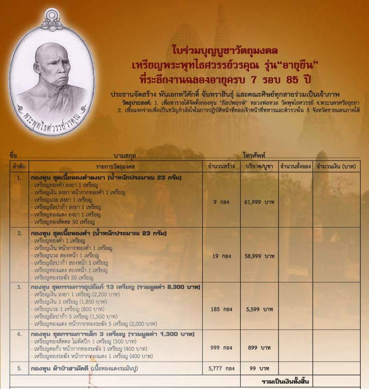 3. ชุดกองบุญ*กัลปพฤกษ์* 3 เหรียญ จำนวน 1 ชุด + ค่าจัดส่ง 100 บาท ยอดโอน 885.03