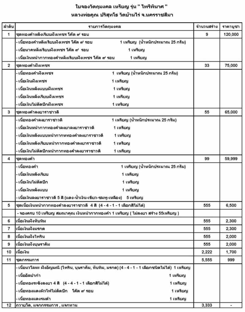 - เหรียญเนื้อเงิน 10 เหรียญ ๆ ละ 1,700 บาท