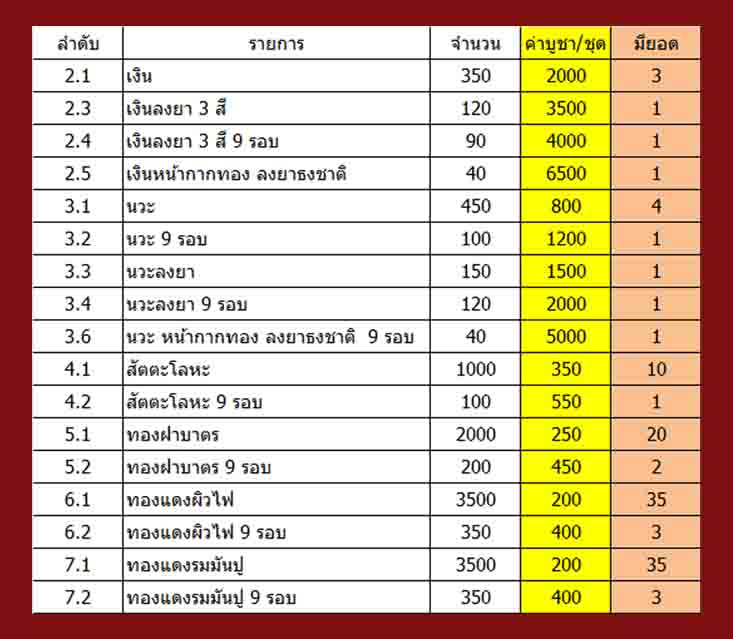 *** ทุกรายการ+ค่าจัดส่ง 100 / ท่าน***