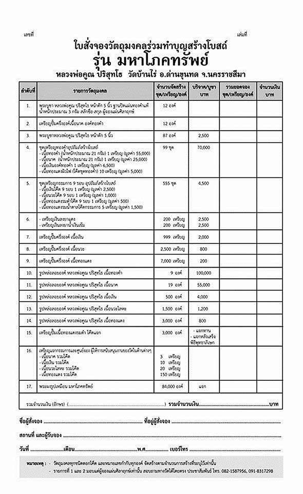 2. รายได้เพื่อสมทบทุน สร้างอุโบสถ์ให้วัดละลมโพธิ์ ต.พุดซา อ.เมือง จ.นครราชสีมา