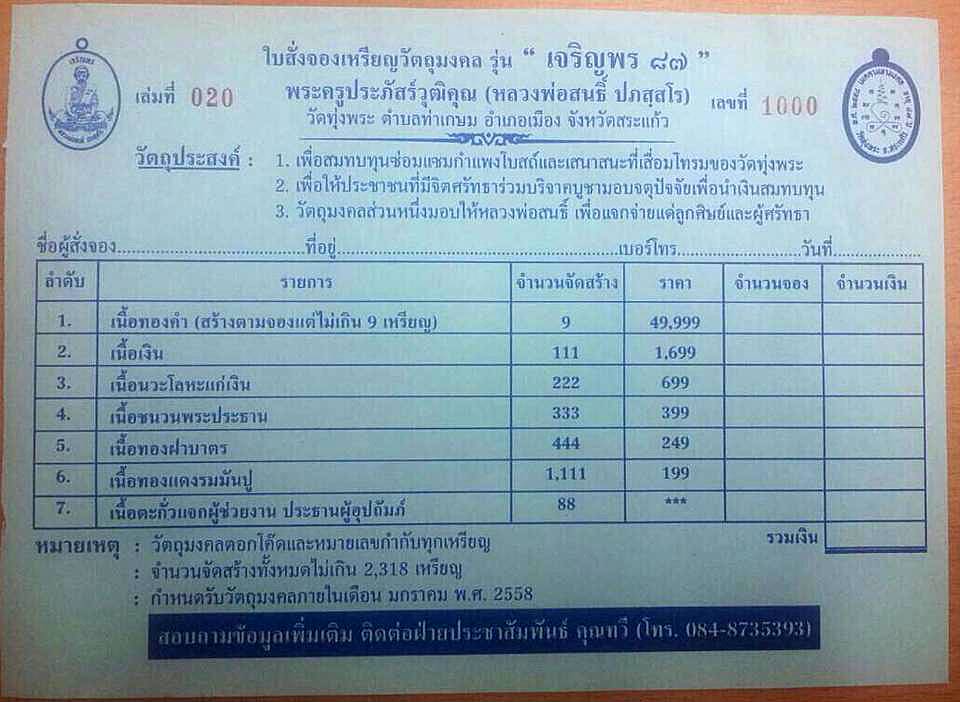 ขายบวกหลวงพ่อสนธิ์ วัดทุ่งพระ เหรียญ"รุ่น.เจิญพร ๘๗"