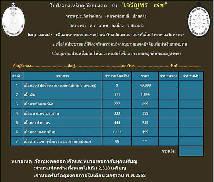 เนื้อเงิน เหรียญละ 3,200 บาท มีจำนวน 1 เหรียญ
