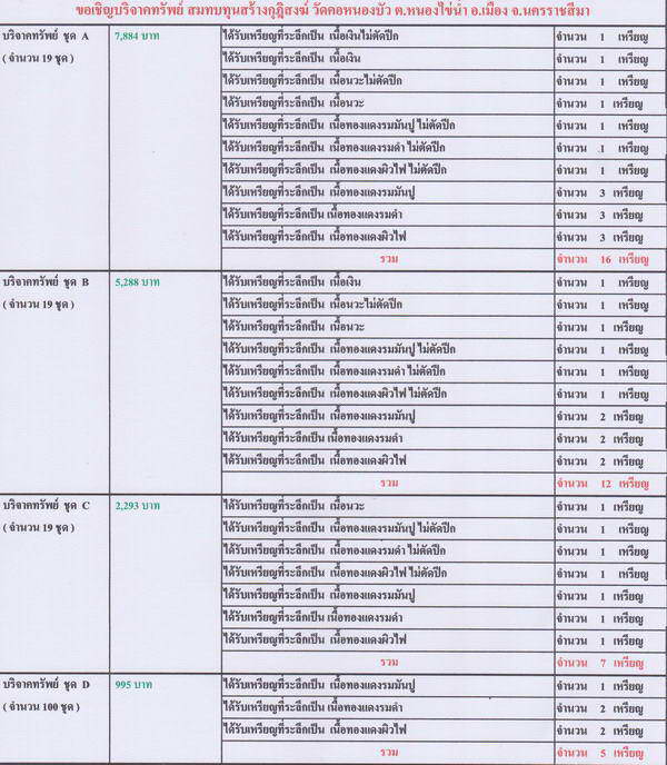 1) บริจาคทรัพย์ชุด A (จำนวน 19 ชุด) ชุดละ 7,884 บาท