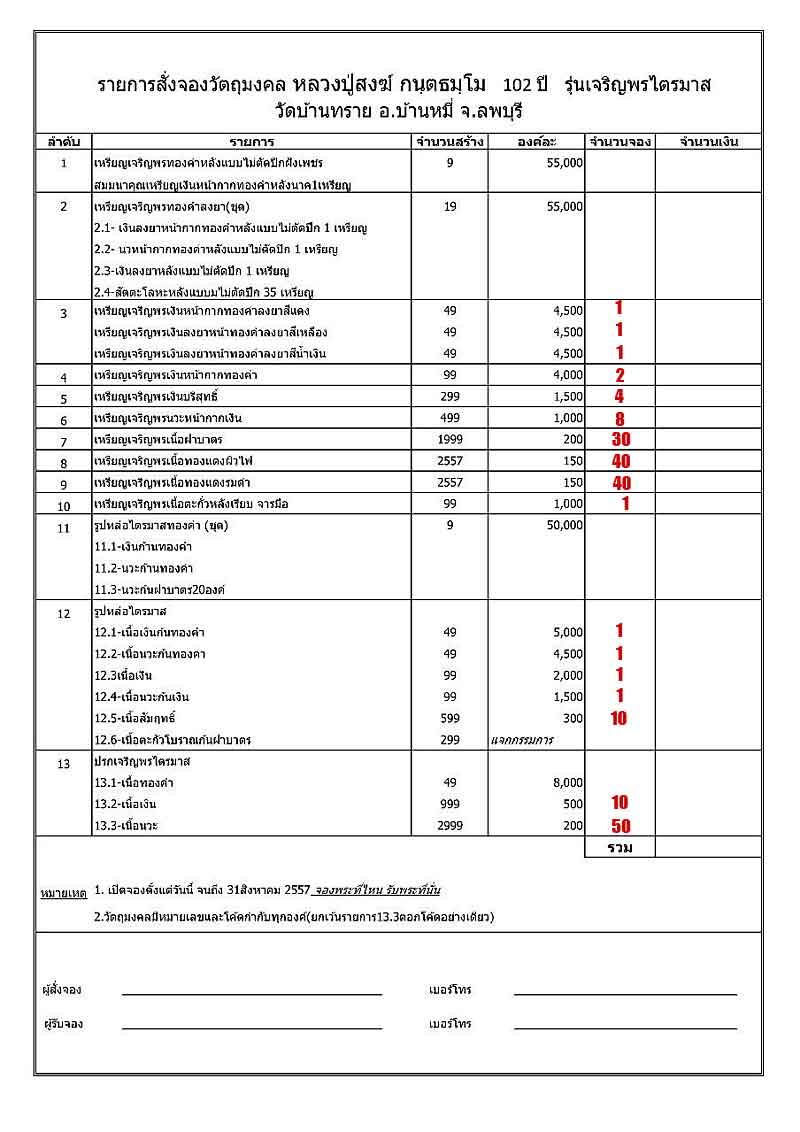 มียอดตามรายการสั่งจองครับ