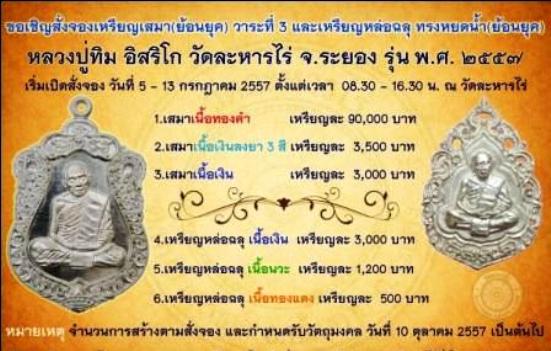 -เปิดจองเหรียญเสมาเนื้อเงินลงยาสามสี จำนวน 27 องค์ ราคาองค์ละ 4500 บาท