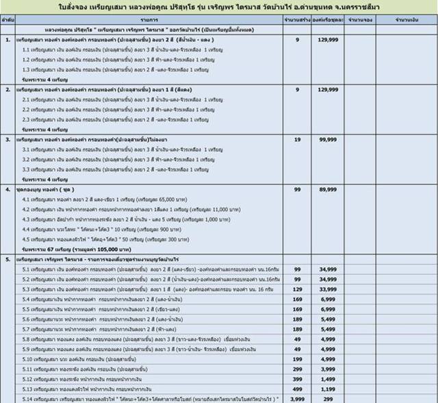 รายการ 5.2 - เหรียญเสมาเงิน องค์ทองคำ กรอบทองคำ (ปะฉลุ 3 ชิ้น) ลงยา 2 สี (น้ำเงิน+แดง) องค์ทองคำและกรอบ 16 กรัม สร้าง 99 เหรียญ ราคา 36,000 บาท มียอด 1 เหรียญ..