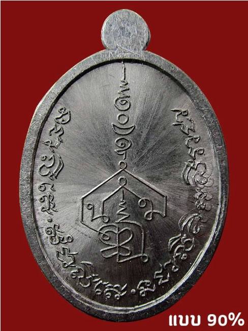 ด้านหลัง เป็นยันต์นอโม ผสมกับยันต์เฑาะขึ้นยอด เหนือขึ้นไปเป็นตัว อุ จันทร์ สูรย์ และอุณาโลม มีอักขระขอมตามขอบเหรียญอ่านได้ว่า "นะชาลีเต สังฆาลีเต นะชาลีติ ภะริราชา" อันเป็นคาถาหัวใจแห่งมหาเศรษฐีทางโชคลาภ