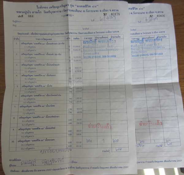 รายการที่ 10.1 และ 10.2 เนื้อทองแดง มียอด 1 ชุด ชุดละ 6000 บาท