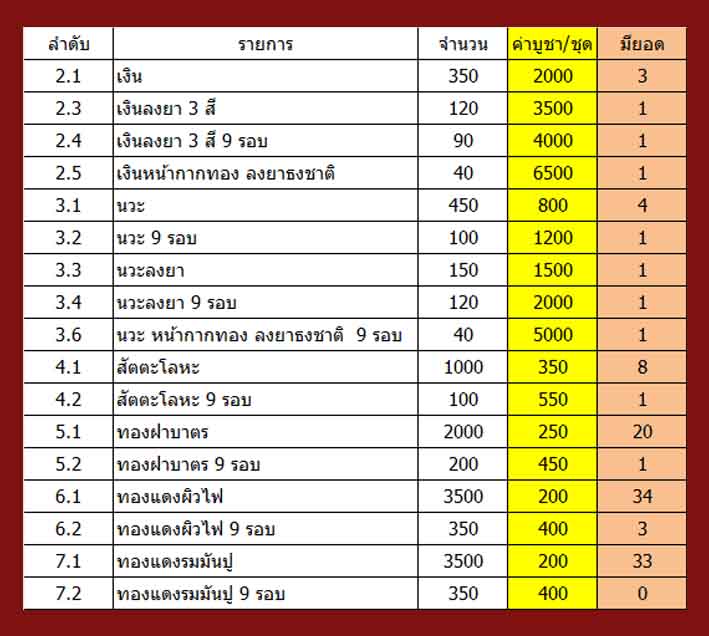 *** ทุกรายการ+ค่าจัดส่ง 100 / ท่าน***