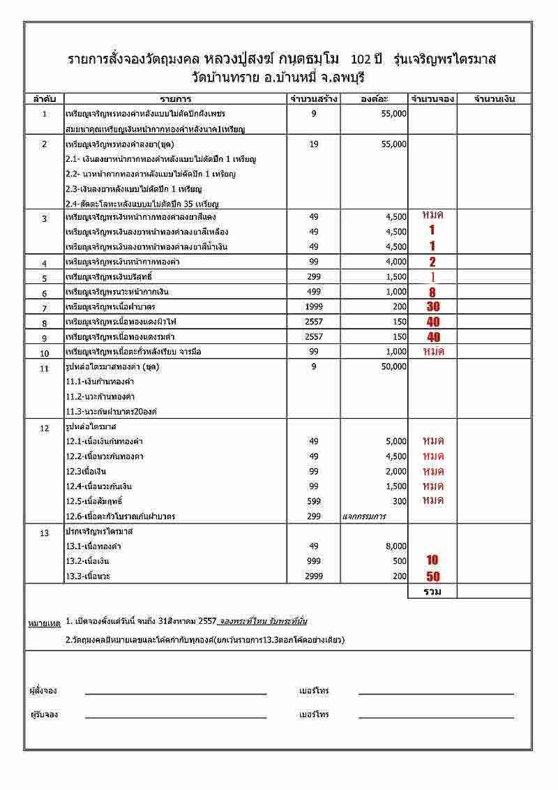 มียอดจองมาแบ่งราคาจอง บวกค่าจัดส่งครับ ตามรายการดังนี้