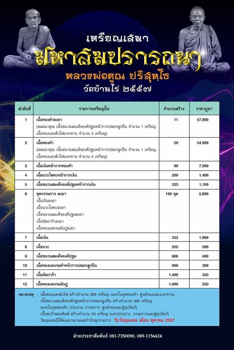 รายการที่ 12 เนื้อทองแดงรมมันปู สร้าง 1,999 เหรียญ มี 10 เหรียญๆละ 400 บาท