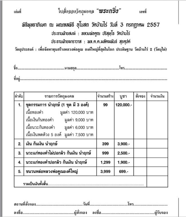 1.พระกริ่งชุดทองคำ นำฤกษ์เทในพิธี สร้าง 99 ชุด ชุดล่ะ 120000 มียอดโทรสอบถาม