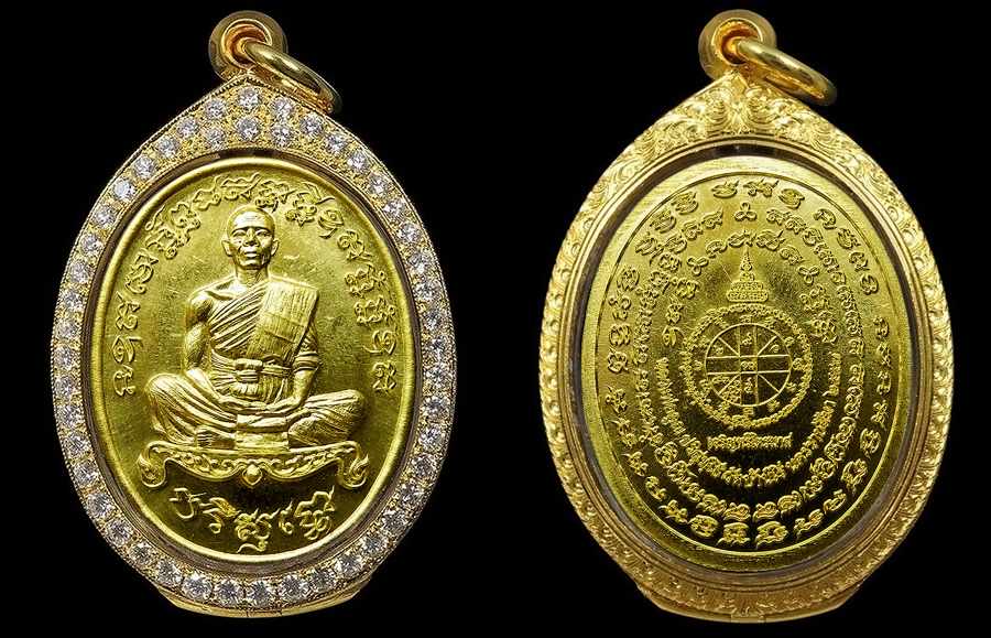 5.2 เสมาเงิน องค์ทองคำ กรอบทองคำ (ปะฉลุ3ชิ้น) ลงยา 2 สี (น้ำเงิน-แดง) นน.16 กรัม จำนวน 1 เหรียญ ราคาเหรียญละ 35,500 บาท